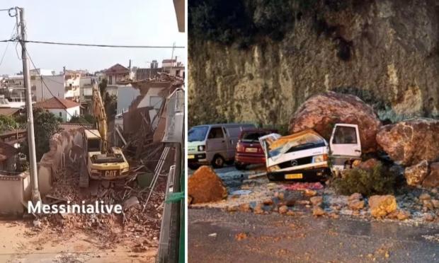 Η Μεσσηνία, επίσης, πλήττεται από σοβαρά προβλήματα, καθώς οι έντονες βροχοπτώσεις των τελευταίων ημερών κατέρριψαν τοιχίο από πλινθόκτιστο σπίτι στο κέντρο της Μεσσήνης, ευτυχώς χωρίς θύματα. Τα προβλήματα επεκτείνονται σε όλο το νομό, με ζημιές σε καλλιέργειες και θερμοκήπια που σκεπάστηκαν από τα νερά. Το φράγμα του ποταμού Παμίσου στην περιοχή του Άρη βρέθηκε στα όριά του, με τις τοπικές αρχές να εκφράζουν ανησυχία για ενδεχόμενη υπερχείλιση.