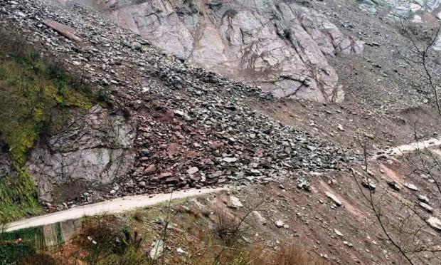 Συγκεκριμένα, μεγάλος όγκος χωμάτων και πετρωμάτων κατέπεσε στο οδόστρωμα, καθιστώντας αδύνατη και επικίνδυνη τη διέλευση οχημάτων, ενώ το φαινόμενο παραμένει σε εξέλιξη λόγω της βροχόπτωσης και χιονόπτωσης στην περιοχή.