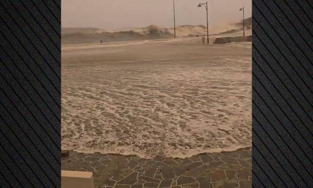 Οι ισχυροί άνεμοι που έπνεαν στο σημείο δημιούργησαν τεράστια κύματα, τα οποία ξεπερνούσαν το ύψος του λιμανιού και, μόλις έσκασαν, πλημμύρισαν την παραλιακή ζώνη.
