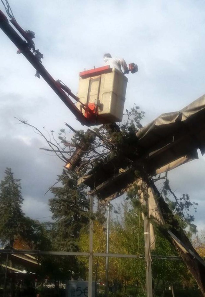 Άμεσα στο σημείο έσπευσαν συνεργεία του δήμου Λαρισαίων με γερανό με στόχο να απομακρύνουν τα δένδρα, πριν αυτά γίνουν περισσότερο επικίνδυνα.