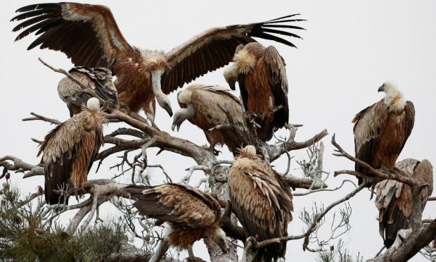 Με βλέμματα διαπεραστικά και ματιές που «σαρώνουν» τον ορίζοντα για να εντοπίσουν τη λεία τους οι γύπες στο προστατευόμενο δάσος της Δαδιάς στο νομό Εβρου προσφέρουν ένα ξεχωριστό θέαμα.