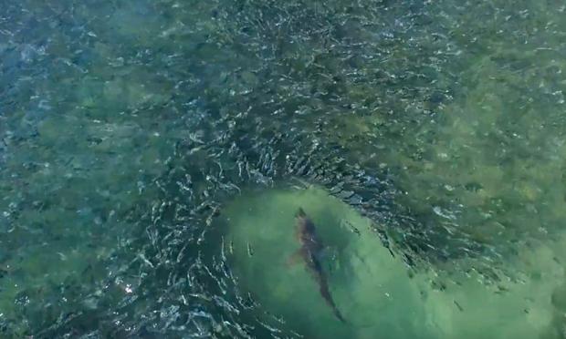 Καρχαρίες, πελεκάνοι και tarpon, κυνηγούν τις εκατομμύρια μουγιλίδες που μεταναστεύουν κατά μήκος της ακτής της Φλώριδας.