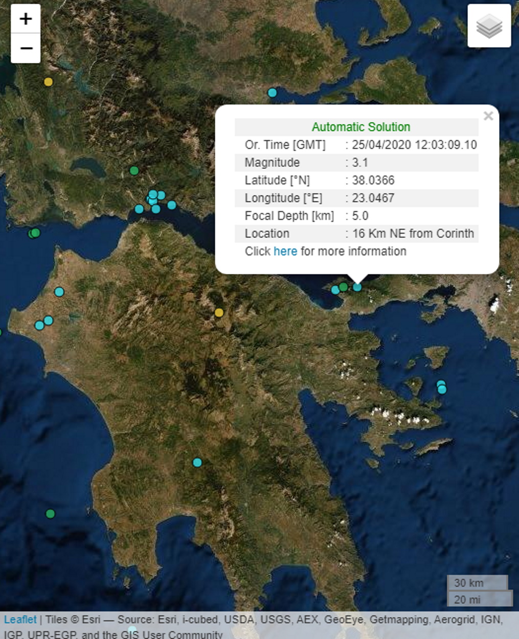 Σεισμός σημειώθηκε στις 15:03′ το μεσημέρι του Σαββάτου (25.04.2020) αυτή τη φορά βορειοανατολικά της Κορίνθου.