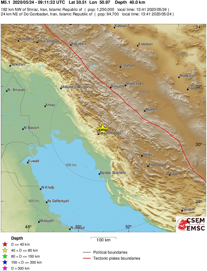 Δυνατός σεισμός μεγέθους 5 βαθμών της κλίμακας Ρίχτερ σημειώθηκε πριν λίγη ώρα στο Ιράν.