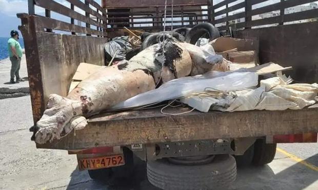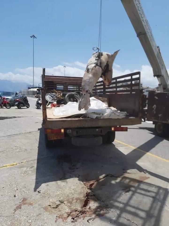 Ψαράς την μετέφερε στην άκρη και οι υπηρεσίες καθαριότητας και καθημερινότητας συντόνισαν δυνάμεις και απομάκρυναν το κουφάρι του άτυχου θηλαστικού.