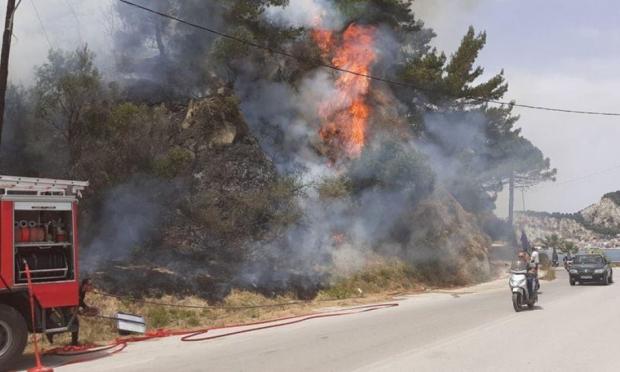 Φωτιά ξέσπασε το μεσημέρι του Σαββάτου στην περιοχή του Αργασίου στη Ζάκυνθο, με τις δυνάμεις της Πυροσβεστικής να σπεύδουν άμεσα στο σημείο προκείμενου να ελέγξουν το μέτωπο και να μην εξαπλωθεί η φωτιά. Σύμφωνα με την ενημέρωση στο σημείο επιχειρούν 18 πυροσβέστες με 8 οχήματα και 2 αεροσκάφη.