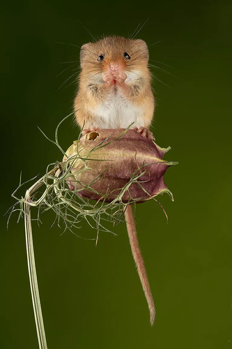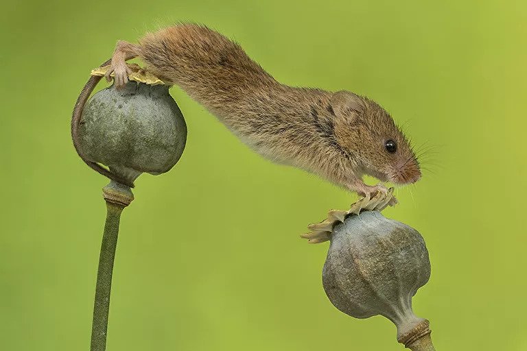 Ποντίκια του αγρού ποζάρουν εν αγνοία τους, ισορροπώντας με αβάστακτα χαριτωμένη ελαφρότητα πάνω στα λουλούδια και άλλα φυτά, σε μια σειρά φωτογραφιών του Βρετανού Μάιλς Χέρμπερτ.
