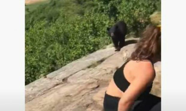 Συγκεκριμένα, όπως φαίνεται στο παρακάτω βίντεο που τράβηξε φίλος της νεαρής κοπέλας, η 25χρονη καθόταν αμέριμνη επάνω σε έναν βράχο να ξαποστάσει όταν ξαφνικά της έκανε πέσιμο μια αρκούδα.