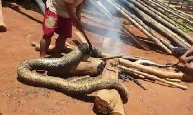 Μετά από μια μάχη με το φίδι που κράτησε 5 λεπτά, ο Μούκντα κατάφερε να σκοτώσει τον πύθωνα και να τον φέρει σπίτι για να τον φάνε.