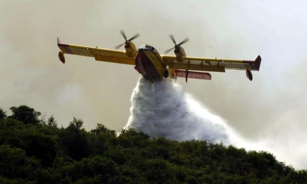 Στο μέτωπο της φωτιάς επιχειρούν 14 πυροσβέστες με επτά οχήματα, ενώ από αέρος πραγματοποιούν συνεχείς ρίψεις νερού δύο πυροσβεστικά αεροπλάνα.