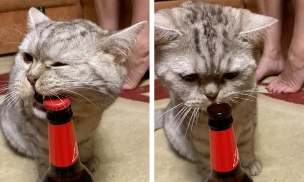 Η 18χρονη Εύα Ασίμοβα από το Νοβοκουζνέτς στη Ρωσία απαθανάτισε τον γάτο της τον Έλβις ν’ ανοίγει ένα μπουκάλι μπίρα με τα δόντια του.