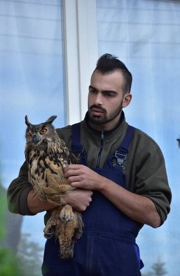Ο φιλόζωος και φυσιολάτρης Νίκος Πατερέκας, εθελοντικά με την εμπειρία και τις γνώσεις του για την άγρια ζωή, ανέλαβε να βοηθήσει τον χτυπημένο μπούφο και να συνδράμει στην μεταφορά του σε τοποθεσία που θα είναι ασφαλής για το μεγάλο αυτό πουλί.
