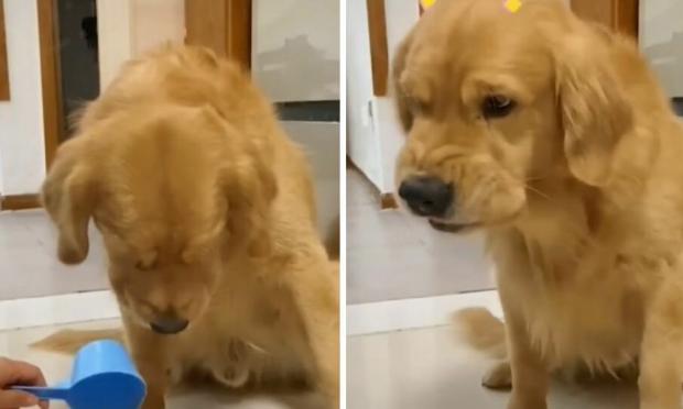 Κι ενώ τις περισσότερες φορές τα σκυλάκια γκόλντεν ριτρίβερ είναι χαριτωμένα και άτσαλα, αυτός ο σκυλάκος φαίνεται να είναι έτοιμος να κάνει και φόνο για το φαγητό του.