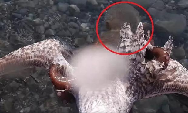 Όπως φαίνεται στο ανατριχιαστικό βίντεο, ο νεαρός γλάρος παλεύει για τη ζωή του, ενώ ένα χταπόδι τον έχει αρπάξει με τα πλοκάμια του και προσπαθεί να τον τραβήξει κάτω από το νερό.