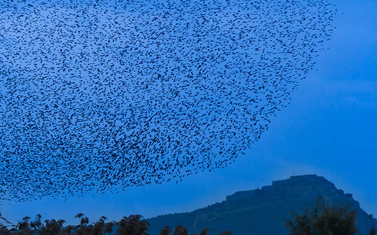 Εντυπωσιακό θέαμα πρόσφερε σήμερα στους κατοίκους του Ναυπλίου ένα τεράστιο σμήνος ψαρονιών που έκαναν ιδιαίτερους σχηματισμούς στον ουρανό, απολύτως συγχρονισμένα.