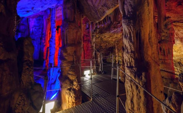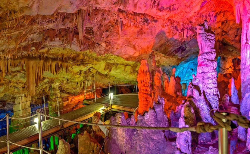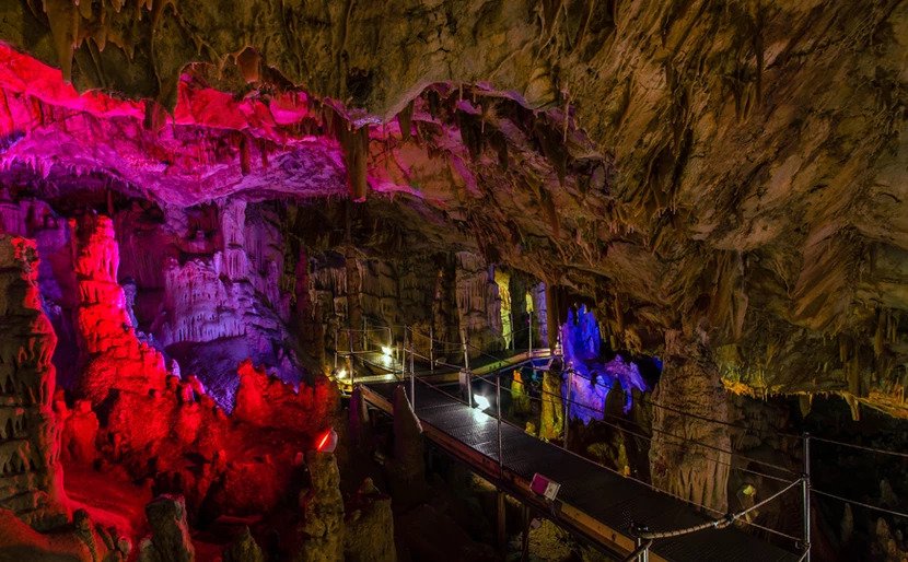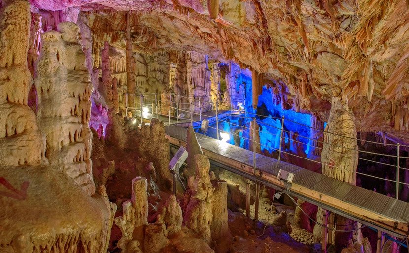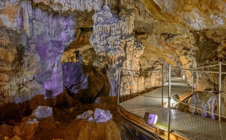 Αυτό, ωστόσο, που το κάνει ιδιαιτέρως ξεχωριστό είναι η σπάνια έγχρωμη λιθωματική «διακόσμησή» του, η οποία δεν μπορεί να κρυφτεί ούτε από το σκοτεινό περιβάλλον του σπηλαίου.