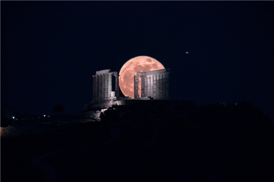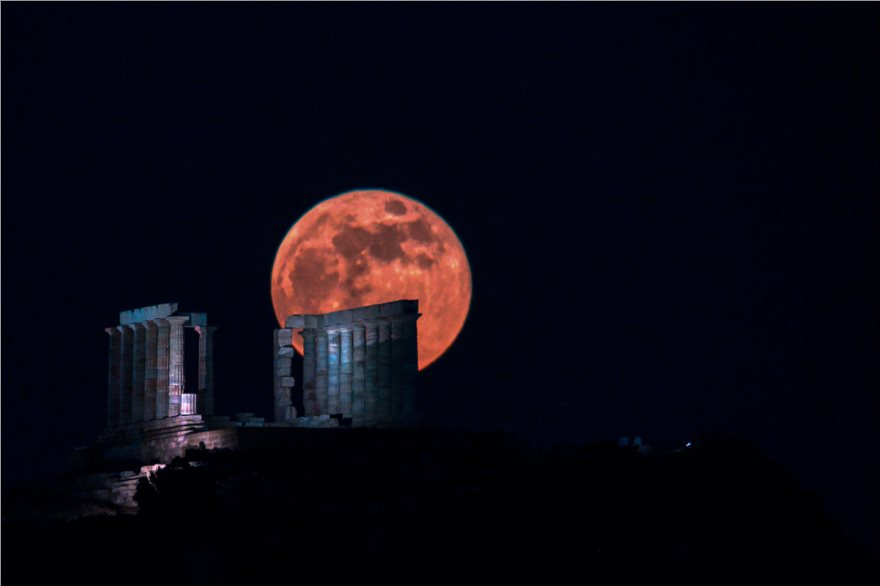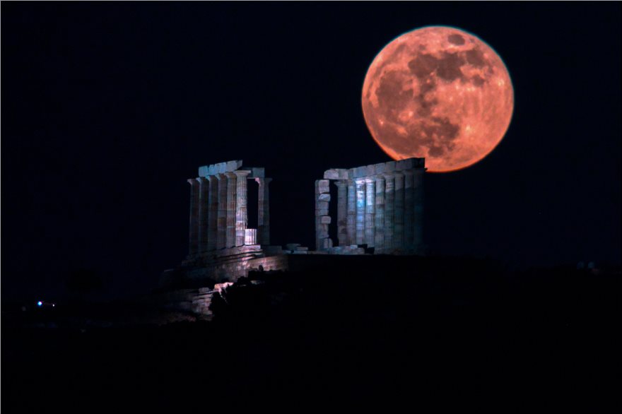 Υπερθέαμα στον ουρανό μαγνητίζει, απόψε, όλα τα βλέμματα, δημιουργώντας ειδυλλιακές εικόνες. Το σπάνιο φαινόμενο, το «Φεγγάρι των Λουλουδιών», η εντυπωσιακή πανσέληνος φωτίζει με μοναδικό τρόπο τα ιστορικά σημεία της Αθήνας, δεσπόζει πάνω από την Ακροπολη και τον Ναό του Ποσειδώνα, στο Σούνιο, προσδίδοντας μια μαγική νότα.