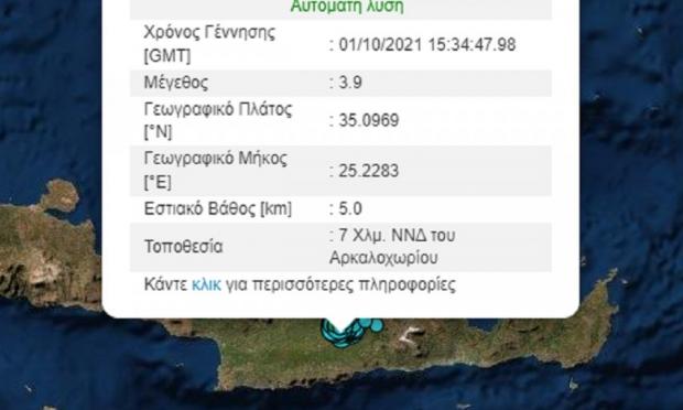 Ο σεισμός σημειώθηκε στις 18:34 και έγινε 7 Χλμ. ΝΝΔ του Αρκαλοχωρίου.