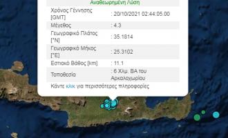 Ένας πολύ ισχυρός σεισμός 6,3 βαθμών της κλίμακας Ρίχτερ καταγράφεται στην Κρήτη στις 12 Οκτωβρίου, στις 12:24 το μεσημέρι στα νότια-νοτιοανατολικά της Κρήτης, σεισμός που δεν συνδέθηκε με την έταιρη μεγάλη σεισμική δόνηση προ εβδομάδων στο Αρκαλοχώρι. Το επίκεντρο του σεισμού ήταν 80 χιλιόμετρα μακριά από αυτόν του Αρκαλοχωρίου και προήλθε από διαφορετικό κέντρο.