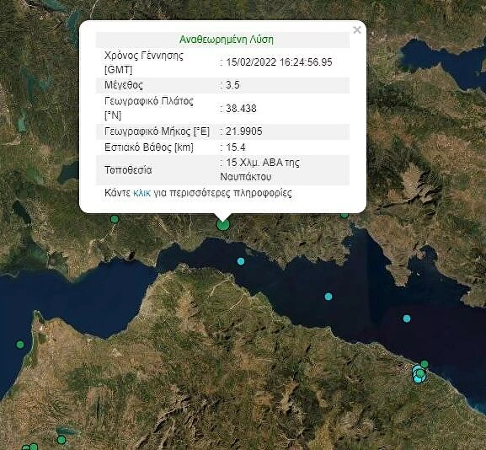 Σεισμός σημειώθηκε στο Αίγιο, το απόγευμα της Τρίτης. Το μέγεθος του σεισμού είναι 3,5 Ρίχτερ. Το εστιακό βάθος υπολογίζεται στα 15,4 χλμ.