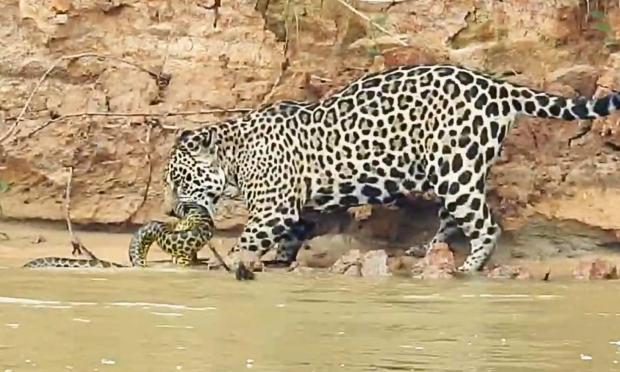 Μάχη υψηλών προδιαγραφών έδωσε στις όχθες ποταμού στην Βραζιλία ανακόντα με ιαγουάρο.