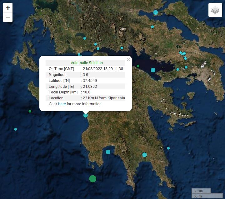 Λίγα λεπτά αργότερα σημειώθηκε και μετασεισμός τη τάξεως των 2,2 Ρίχτερ με εστιακό βάθος 15,8 χλμ.
