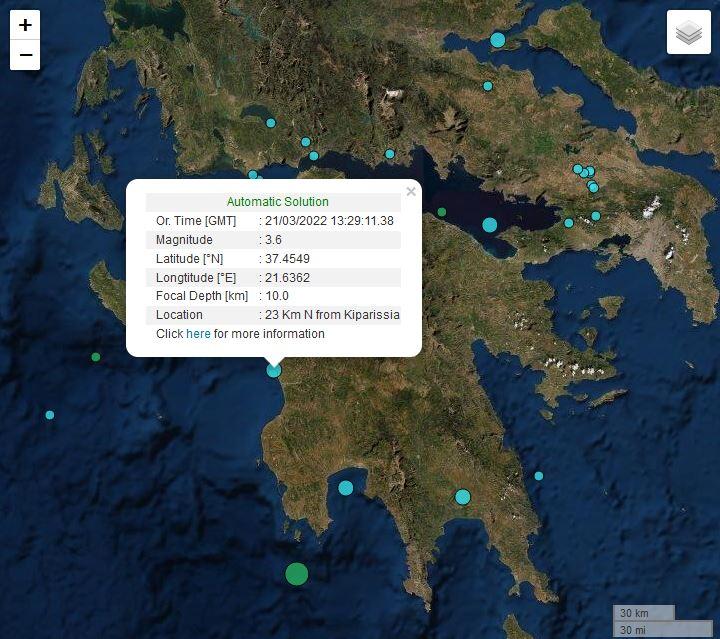 Συγκερκιμένα, ο σεισμός σημειώθηκε 23 χλμ βόρεια της Κυπαρισσίας και είχε εστιακό βάθος 10 χλμ.