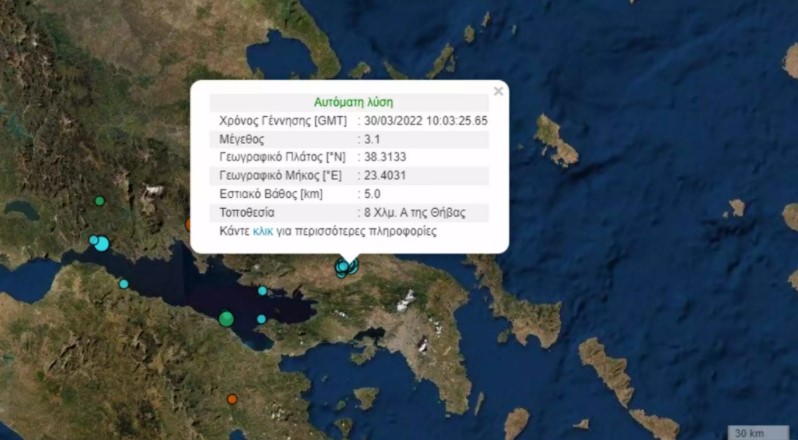 Σεισμός τώρα στη Θήβα – Ρηχό το εστιακό βάθος