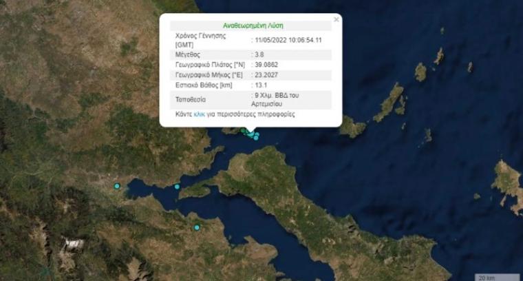 Ο σεισμός στο Αρτεμίσιο είναι της τάξης των 3,8 βαθμών της κλίμακας Ρίχτερ, σύμφωνα με το Γεωδυναμικό Ινστιτούτο του Εθνικού Αστεροσκοπείου Αθηνών. Το εστιακό βάθος βρίσκεται στα 13,1 χιλιόμετρα.