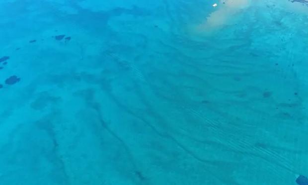 Όσο κι αν κινείται η θάλασσα από πάνω τους, αυτά τα «κύματα» παραμένουν ακίνητα, σαν ένας μόνιμα αποτυπωμένος βαθμιδωτός διάδρομος με λευκή άμμο, που αποδιδει ένα υπέροχο τιρκουάζ χρώμα στο νερό.