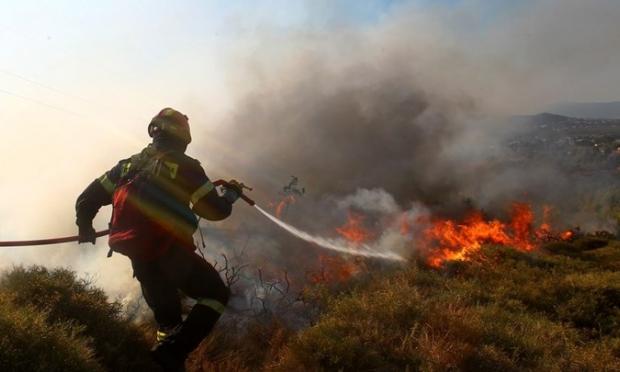 Η φωτιά σύμφωνα με τις πρώτες πληροφορίες καίει ξερά χόρτα και δεν απειλεί κατοικημένες περιοχές.