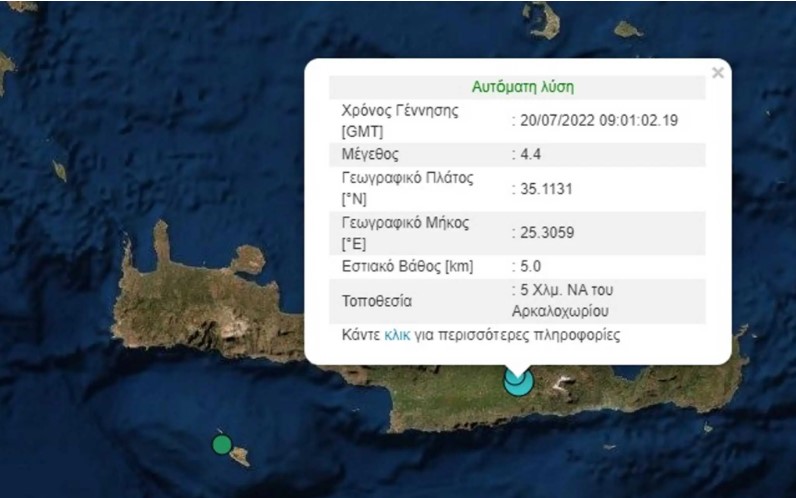 Σύμφωνα με το Γεωδυναμικό Ινστιτούτο, ο σεισμός σημειώθηκε στις 12.01 το μεσημέρι και είχε ένταση 4,4 βαθμοί της κλίμακας Ρίχτερ.