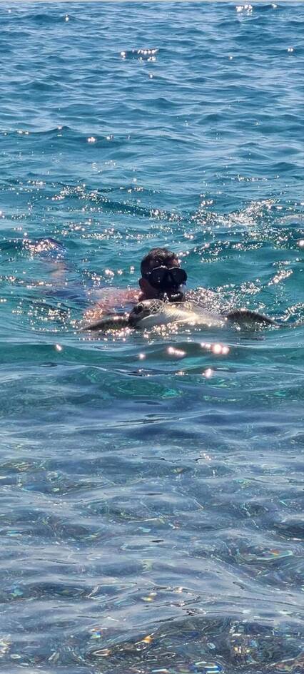 «Η διάσωση της χελώνας που βρέθηκε μπλεγμένη με σχοινιά σε σίδερα στον πυθμένα της θάλασσας στην παραλία του Γενναδίου. Καλέσαμε τον Γιώργο τον Μακρύλλο έναν έμπειρο δύτη και η επιχείρηση διάσωσης της χελώνας ξεκίνησε πραγματοποίησε κατάδυση κόβοντας τα σχοινιά φέρνοντας την χελώνα στην στεριά επιχειρώντας τον όρο της τεχνίτης αναπνοής.