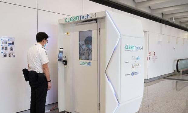 Αξιωματούχοι στο διεθνές αεροδρόμιο του Χονγκ Κονγκ ισχυρίζονται ότι είναι οι πρώτοι στον κόσμο που δοκιμάζουν σε πραγματικές συνθήκες τον θάλαμο απολύμανσης, για ολόκληρο το σώμα.
