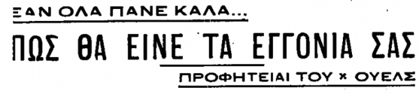 Στις 18 Δεκεμβρίου του 1933, το «ΕΛΕΥΘΕΡΟΝ ΒΗΜΑ» δημοσιεύει, στην πρώτη του σελίδα, άρθρο του συγγραφέα Χέρμπερτ Τζόρτζ Γουέλς (Herbert George Wells), που θεωρείται, μαζί με τον Ιούλιο Βέρν και τον εκδότη Χιούγκο Γκέρνσμπακ, «πατέρας» της επιστημονικής φαντασίας.
