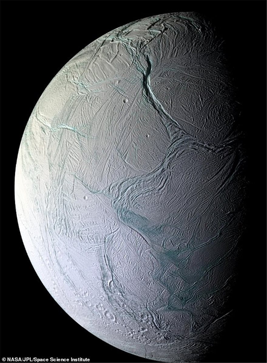 Ο Εγκέλαδος - το έκτο μεγαλύτερο φεγγάρι του Κρόνου από τα 82 συνολικά - είναι μια παγωμένη σφαίρα διαμέτρου μόλις 313 μιλίων (περίπου το ένα έβδομο της διαμέτρου του φεγγαριού της Γης).