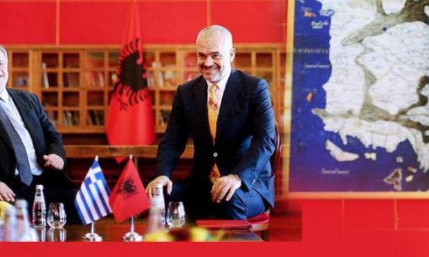Στη φωτογραφία από την επίσημη συνάντηση Κοτζιά-Ράμα δεσπόζει ένας… περίεργος χάρτης με την Αλβανία και εδάφη που ανήκουν στην Ελλάδα.