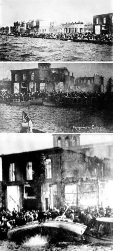 «...Σε λίγο φθάνομε εις την τουρκικήν συνοικίαν. Εκεί οι Τούρκοι πολίται επιπίπτουν επάνω μας και μας κτυπούν με ότι βρίσκουν μπροστά των. Γελούν απαίσια από ευχαρίστησιν και το γέλιο τους μας ξεσχίζει την καρδιά και μας τρομάζει. Mε τους Τούρκους συμπράττουν και οι Εβραίοι…