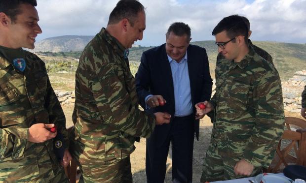 Ο Πάνος Καμμένος ανήμερα το Πάσχα επισκέφθηκε το φυλάκιο στο ακριτικό Αγαθονήσι ευχήθηκε καλές γιορτές στη στρατιωτική ηγεσία και τους στρατιώτες που υπηρετούν στην περιοχή.