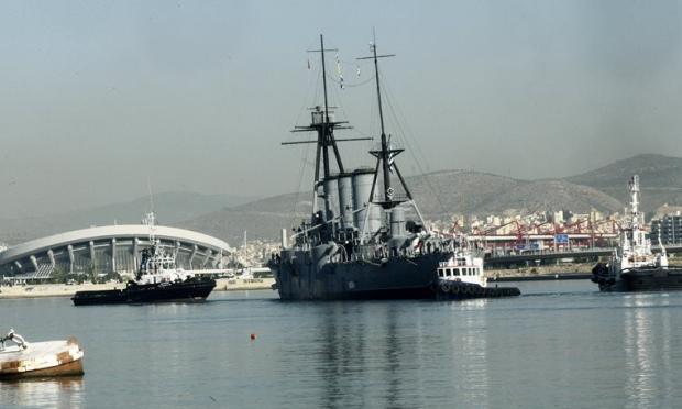 H ιστορική ναυαρχίδα του Πολεμικού Ναυτικού, το θωρηκτό «Αβέρωφ» που καθελκύσθηκε το 1910, ρυμουλκήθηκε χθες Τετάρτη στα ναυπηγεία Σκαραμαγκά.