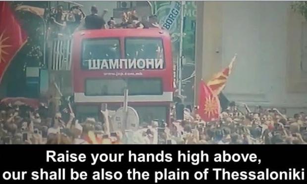 Χαρακτηριστικά, το βίντεο δείχνει την έξαρση κατά τη στιγμή που τραγουδούσαν το ακροδεξιό και φασιστικό τραγούδι «Ιζλέζι Μόμτσε» [βγες έξω, αγόρι], το οποίο επαναλαμβάνονταν πολλές φορές κατά τη διάρκεια της υποδοχής των αθλητών που έφθαναν στην κεντρική πλατεία των Σκοπίων.