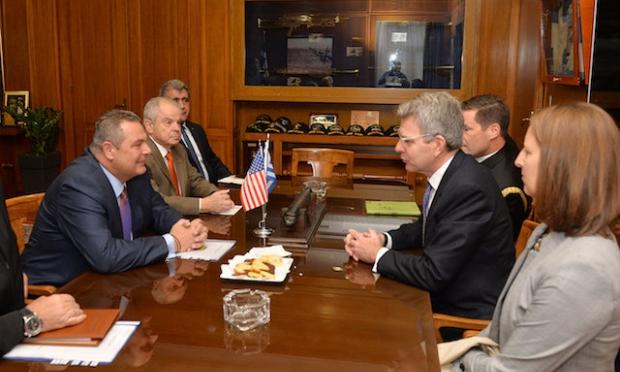 Ο Αμερικανός πρεσβευτής στην Αθήνα Τζέφρι Πάιατ αντί να πάει στην Επιτροπή Εξοπλισμών της Βουλής για να απαντήσει στις "σκιές" που βλέπει η Ντόρα Μπακογιάννη ανεβαίνει στο Πεντάγωνο για να συναντήσει τον υπουργό Εθνικής Άμυνας Πάνο Καμμένο και να συζητήσουν τί άλλο, την αναβάθμιση των F-16.