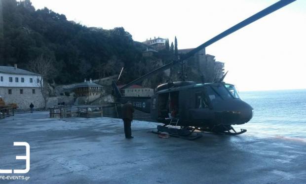 Στις φωτογραφίες βλέπουμε το ελικόπτερο που μετέφερε τον κύριο Καμμένο στο Αγιο Ορος.