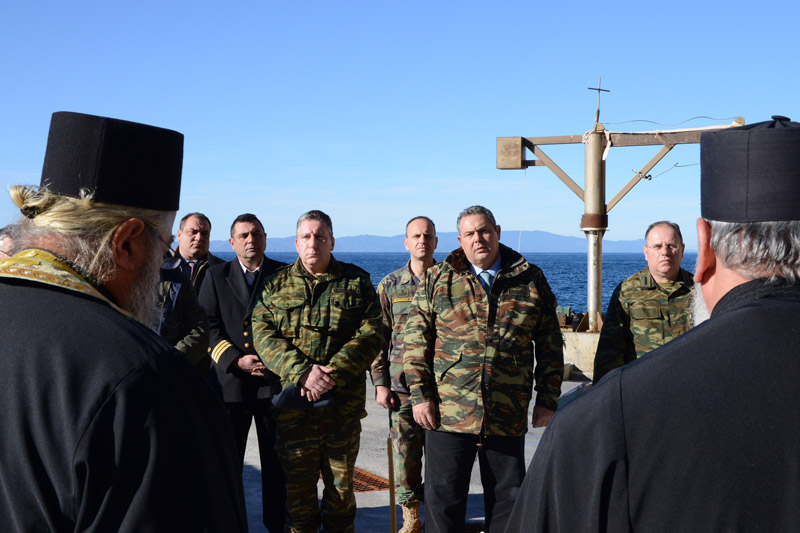 Σύμφωνα με ανακοίνωση που εκδόθηκε από το υπουργείο, ο κ. Καμμένος «επισκέφθηκε το Άγιον Όρος για τον εορτασμό των Θεοφανείων και για τα εγκαίνια του λιμενοβραχίονα Καρουλίων που ανακατασκεύασε εκ βάθρων η Διεύθυνση Μηχανικού του Γ’ Σώματος Στρατού».