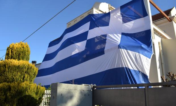 Με μία τεράστια σημαία κάλυψε το σπίτι του ένας κάτοικος της Νέας Κίου.
