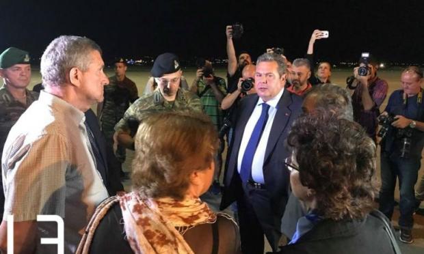 «Είναι μια πολύ μεγάλη ημέρα για την πατρίδα μας, ημέρα της Παναγίας, ημέρα της Τήνου του 1940» δήλωσε ο υπουργός Εθνικής Άμυνας Πάνος Καμμένος μετά την υποδοχή στο αεροδρόμιο «Μακεδονία» των δύο Ελλήνων στρατιωτικών.