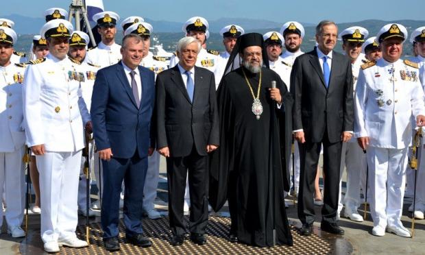 Στη συνέχεια, ο Πρόεδρος της Δημοκρατίας συνοδευόμενος από τον Μητροπολίτη Μεσσηνίας και τους Εκπροσώπους των λοιπών Αρχών επιθεώρησε τη Φρεγάτα του Πολεμικού Ναυτικού «Ψαρά».