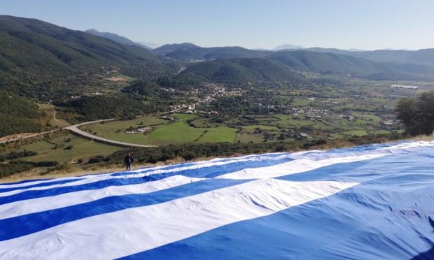 Η σημαία που είναι ορατή και από την Ε.Ο Ιωαννίνων Κόνιτσας , σε λίγες ώρες θα κλέψει και φέτος τα βλέμματα των επισκεπτών που θα κατακλύσουν την περιοχή του Καλπακίου προκειμένου να παρακολουθήσουν τις σημερινές εορταστικές εκδηλώσεις και την αναπαράσταση της Μάχης που αποτελεί την κορύφωση των εκδηλώσεων για την αυριανή Εθνική Επέτειο .