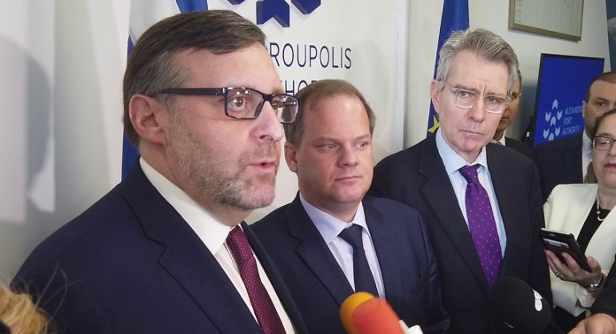 Για τη στήριξη των ΗΠΑ προς την Ελλάδα και τον Έβρο, καθώς και τις μελλοντικές δυνητικές αμερικανικές επενδύσεις στο λιμάνι και την περιοχή έκανε λόγο, μεταξύ άλλων, ο αναπληρωτής βοηθός υπουργού Εξωτερικών των ΗΠΑ, αρμόδιος για Ευρωπαϊκές και Ευρασιατικές Υποθέσεις, Μάθιου Πάλμερ. Ο ίδιος βρέθηκε στην Αλεξανδρούπολη μαζί με τον Πρέσβη των ΗΠΑ στην Αθήνα, Τζέφρι Πάιατ, τον Πρόξενο των ΗΠΑ στη Θεσσαλονίκη, Γκρέκ Πφλέγκερ, τον Υπουργό Υποδομών και Μεταφορών, Κώστα Καραμανλή καθώς και αξιωματούχους και υπηρεσιακούς.