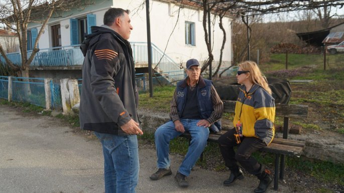 Ο 82χρονος κυρ Γιάννης κάθεται σε ένα παγκάκι και μας παρατηρεί στη μέση του πουθενά. Μέχρι το 1969 εργάζονταν στα λιγνιτορυχεία στην κορυφή του λόφου. Τέσσερις εταιρείες δραστηριοποιούνταν και όλοι είχαν δουλειά: «Μέχρι το 1969 όλα πήγαιναν καλά. Μετά για κάποιο λόγο δεν ανανέωσαν τα συμβόλαια εξόρυξης και τα λυγνιτορυχεία έκλεισαν. Εφυγα μετανάστης στο Βέλγιο και στη Γερμανία για 30 χρόνια. Το 2000 γύρισα πίσω και από τότε είμαι εδώ. Δεν ανησυχώ για τους Τούρκους, δεν ανησυχώ για τους μετανάστες πρόσφυγες. Ανησυχώ για τους Ελληνες. Οι Τούρκοι όπως βλέπετε μπροστά σας κάνουν μια χαρά τη δουλειά τους. Αναπτύσσονται, φτιάχνουν πράγματα και διεκδικούν. Οι πρόσφυγες θα την βρουν την άκρη τους. Εμείς τι ακριβώς κάνουμε; Μείναμε 28 άνθρωποι στο χωριό, όλοι πάνω από 60-65. Πόσο θα ζήσουμε; Μόνο ο Παναγιώτης θα μείνει πίσω».